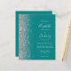 Le bord gauche de cette élégante faire-part de mariage moderne est orné d'une bordure en faux parties scintillant argenté. Le texte personnalisable combine écriture gris argenté, copperplate et polices italiques sur un arrière - plan bleu turquoise. Ajoutez des détails supplémentaires au verso, ainsi qu'un code QR pour aider vos invités à visiter votre site Web mariage.