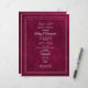 Set the tone for a refined and memorable ceremony with this elegant berry velvet–style wedding program/Order of Ceremony. Designed with a rich, jewel-toned background and a soft velvet-inspired texture, this program features graceful script typography for the couple’s names, framed by delicate ornamental flourishes and a classic double-line border. The clean serif text clearly presents the order of ceremony, officiant, and family acknowledgments, making it both beautiful and easy to read. Perfect for fall and winter weddings, evening ceremonies, and formal or semi-formal celebrations, this wedding program coordinates seamlessly with velvet-look invitations, belly bands, and matching wedding stationery for a polished, cohesive presentation.