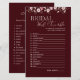 Add elegant fun to your bridal shower with this Bride in Bloom Bridal Word Scramble Game. Featuring a rich burgundy background with soft floral accents, this printable-style card challenges guests to unscramble wedding-related words within a set time. Perfect for bridal showers, engagement parties, and bachelorette celebrations. The game includes 15 wedding-themed words and a matching answer key on the back, making it easy for the host to score. Ideal for modern, floral, and romantic bridal shower themes.