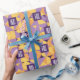 Papier d'emballage pour la fête d'Halloween en automne. Caractérisé par des motifs géométriques dans des tons apaisants de violet, orange et jaune, ce design apporte une touche sophistiquée et nostalgique à votre jour spécial. Parfait pour les couples qui souhaitent capturer l'essence de l'automne avec une ambiance élégante et unique. Facile à personnaliser et idéal pour tout mariage automnal, ce modèle ajoutera de la chaleur et de l'élégance à votre célébration.