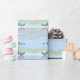 Joli papier d'emballage bleu clair avec ma conception de deux coeurs en étain flottant sur l'eau sous un arc-en-ciel. Le texte personnalisable dit "10 ans".
