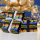 Ce papier d'emballage d'anniversaire joyeux, coloré et amusant comporte un grand nombre de "22" et le message "HAPPY BANTHDAY", tous deux avec une couleur motif inspirée par un gradient de spectre arc-en-ciel, ainsi qu'un nom de destinataire personnalisé jaune gras. L'arrière - plan est noir de couleur. Un papier d'emballage thématique pour anniversaire amusant comme celui-ci peut être utilisé pour envelopper un cadeau ou un cadeau donné à quelqu'un qui célèbre son 22e anniversaire. [~Z0000475]