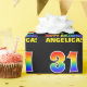 Ce papier d'emballage amusant, coloré et joyeux, à thème d'anniversaire, comporte un grand nombre de "31" et le message "HAPPY BANTHDAY", tous deux colorés avec un motif inspiré par un gradient de spectre arc-en-ciel, ainsi qu'un nom de destinataire modifiable jaune gras. L'arrière - plan est noir de couleur. Un papier d'emballage amusant comme celui-ci peut être utilisé pour envelopper un cadeau d'anniversaire ou un cadeau donné à quelqu'un qui célèbre son 31e anniversaire. [~Z0000475]