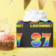 Ce papier d'emballage d'anniversaire joyeux, coloré et amusant comporte un grand nombre de "37" et le message "HAPPY BANTHDAY", tous deux colorés avec un motif inspiré par un gradient de spectre arc-en-ciel, ainsi qu'un nom de destinataire personnalisé jaune gras. L'arrière - plan est noir de couleur. Un papier d’emballage thématique pour anniversaire amusant comme celui-ci peut être utilisé pour donner un cadeau ou un cadeau pour célébrer le trente-septième anniversaire de quelqu’un. [~Z0000475]