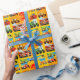 Célébrez votre troisième anniversaire avec ce papier d'emballage camion fait sur commande extraordinaire d'anniversaire de grand ! Neuf camions colorés lumineux entourent un grand grand numéro 3 ! Mélangeurs de ciment, camions de déchargeur, bouteurs jaunes, camions à benne basculante oranges, rouleaux, tracteurs verts, camions de pompiers, bêcheurs jaunes ! Grands camions de construction pour des enfants. Perfectionnez pour 3 ans sur son 3ème anniversaire. Accessoires orientés de fête d'anniversaire de l'enfant unique de camion, approvisionnements et idées de cadeau de camion. Tous les conceptions de camion et © Paul Stickland d'illustrations de camion