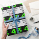Cette conception de papier d'emballage à thème d'anniversaire nerdy et amusant comprend un grand modèle de jeu vidéo rétro vert numéro "43" sur un arrière - plan de couleur noire. Il comporte également le message de voeux d'anniversaire "Joyeux 43e anniversaire", et un nom modifiable. Un papier d'emballage amusant comme celui-ci pourrait être utilisé pour envelopper les cadeaux donnés à un administrateur système informatique, un programmeur informatique, ou quelqu'un qui aime vraiment les jeux rétro, pour célébrer leur quarante-troisième anniversaire. [~Z0000403]