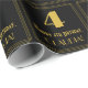 Ce papier cadeau de style vintage et inspiré des Années folles comporte un grand chiffre "4" dans un style Art déco, le message "Joyeux 4ème anniversaire", un nom personnalisé, et un motif de bordure constitué de lignes fines. Du papier cadeau comme celui-ci pourrait être utilisé pour emballer des cadeaux offerts à quelqu'un pour célébrer son quatrième anniversaire.