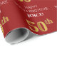 Papier Cadeau 50e anniversaire : Elégant, Rouge, Faux Gold Look