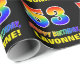 Ce papier d'emballage joyeux, coloré et amusant à thème d'anniversaire comporte un grand nombre de "53" et le message "HAPPY BANTHDAY", tous deux colorés avec un motif inspiré par un gradient de spectre arc-en-ciel, ainsi qu'un nom de destinataire modifiable jaune gras. L'arrière - plan est noir de couleur. Un papier d’emballage amusant comme celui-ci peut être utilisé pour donner un cadeau ou un cadeau en l’honneur du 53e anniversaire de quelqu’un. [~Z0000475]