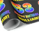 Ce papier d'emballage d'anniversaire coloré, amusant et joyeux comporte un grand nombre de "63" et le message "HAPPY BANTHDAY", tous deux avec une couleur motif inspirée par un gradient de spectre arc-en-ciel, ainsi qu'un nom de destinataire personnalisable jaune gras. L'arrière - plan est noir de couleur. Un papier d'emballage thématique pour anniversaire amusant comme celui-ci pourrait être utilisé pour envelopper un cadeau ou un cadeau donné à quelqu'un qui célèbre son 63e anniversaire. [~Z0000475]