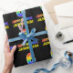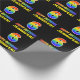 Ce papier d'emballage d'anniversaire joyeux, amusant et coloré présente un grand nombre de "6" et le message "HAPPY BANTHDAY", tous deux avec une couleur motif inspirée du gradient de spectre arc-en-ciel, ainsi qu'un nom de destinataire personnalisable jaune gras. L'arrière - plan est noir de couleur. Un papier d’emballage à thème d’anniversaire amusant comme celui-ci pourrait être utilisé pour envelopper un cadeau ou un cadeau donné pour célébrer le sixième anniversaire de quelqu’un. [~Z0000475]