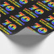 Ce papier d'emballage coloré, gai et amusant sur le thème de l'anniversaire comporte un grand nombre de "70" et le message "HAPPY BANTHDAY", tous deux ayant un dégradé arc-en-ciel coloré inspiré couleur motif, ainsi qu'un nom de destinataire personnalisé jaune gras. L'arrière - plan est noir de couleur. Un papier d’emballage à thème d’anniversaire amusant comme celui-ci peut être utilisé pour envelopper un cadeau ou un cadeau donné pour célébrer le 70e anniversaire de quelqu’un. [~Z0000475]