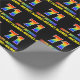 Ce papier d'emballage d'anniversaire joyeux, coloré et amusant comporte un grand nombre de "71" et le message "HAPPY BANTHDAY", tous deux colorés avec un motif inspiré par un gradient de spectre arc-en-ciel, ainsi qu'un nom de destinataire personnalisé jaune gras. L'arrière - plan est noir de couleur. Un papier d'emballage amusant comme celui-ci pourrait être utilisé pour envelopper un cadeau d'anniversaire ou un cadeau donné à quelqu'un qui célèbre son 71e anniversaire. [~Z0000475]