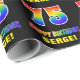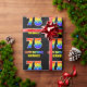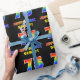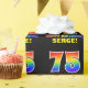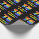 Ce papier d'emballage d'anniversaire coloré, amusant et gai comporte un grand nombre de "75" et le message "HAPPY BANTHDAY", tous deux dotés d'une couleur motif inspirée par un gradient de spectre arc-en-ciel, ainsi que d'un nom de destinataire personnalisé jaune gras. Le arrière - plan est noir de couleur. Un papier d'emballage amusant comme celui-ci pourrait être utilisé pour envelopper des cadeaux donnés à quelqu'un pour célébrer leur soixante-quinzième anniversaire. [~Z0000475]