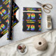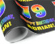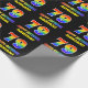 Ce papier d'emballage amusant, coloré et joyeux, à thème d'anniversaire, comporte un grand nombre de "79" et le message "HAPPY BANTHDAY", tous deux colorés avec un motif inspiré par un gradient de spectre arc-en-ciel, ainsi qu'un nom de destinataire personnalisé jaune gras. L'arrière - plan est noir de couleur. Un papier d'emballage amusant comme celui-ci pourrait être utilisé pour envelopper un cadeau d'anniversaire ou un cadeau donné à quelqu'un qui célèbre son 79e anniversaire. [~Z0000475]