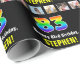 Ce papier d'emballage d'anniversaire audacieux et attrayant comporte un grand nombre de "83" ayant un motif dégradé multicolore inspiré du spectre arc-en-ciel, plus le message "Happy 83rd Birthday", et un nom de destinataire personnalisé. Il y a aussi des photos qui peuvent être personnalisées, peut-être avec des photos du destinataire, de la famille et des amis du destinataire et/ou de l’expéditeur du cadeau. Un papier comme celui-ci pourrait être utilisé pour envelopper les cadeaux donnés à quelqu'un pour célébrer son quatre-vingt-troisième anniversaire. (Photographie © Storytree Studios, Stanford, CA.) [~Z0000670]
