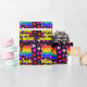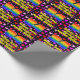 This joyful and happy birthday wrapping paper design features a large number “84” having a rainbow spectrum gradient inspired pattern. It also features the message “Happy 84th Birthday,”, and a personalized name. The background features a pattern of purple, red, and pink heart shapes. Birthday themed wrapping paper like this might be used when giving a gift or present in celebration of somebody’s 84th birthday. [~Z0000549]