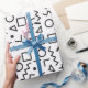 Papier Cadeau 90's Noir & Blanc Retro Shapes Motif
