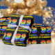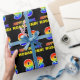Ce papier d'emballage joyeux, coloré et amusant sur le thème de l'anniversaire comporte un grand nombre de "93" et le message "HAPPY BANTHDAY", tous deux ayant un dégradé arc-en-ciel coloré inspiré couleur motif, ainsi qu'un nom de destinataire personnalisé jaune gras. L'arrière - plan est noir de couleur. Un papier d’emballage thématique pour anniversaire amusant comme celui-ci peut être utilisé pour donner un cadeau ou un cadeau pour célébrer le 93e anniversaire de quelqu’un. [~Z0000475]