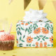 A piece of wrapping paper with a floral pattern featuring orange flowers and green leaves, shown unrolled and flat against a white background.
