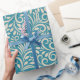 Papier Cadeau Abstrait cyan foncé fleuri motif