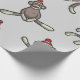 De mignons singes chaussettes dans différentes poses sur un arrière - plan gris clair.