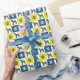 Airedale terrier chien silhouette jaune, bleu Grille Lignes motif abstrait avec empreintes de pattes alternatifs. Parfait pour les amoureux de les chiens à l'anniversaire, les occasions spéciales, ou juste parce que, ce papier est sûr d'envelopper vos cadeaux avec amour. Faites des souvenirs uniques et achetez dès maintenant pour une expérience de don inoubliable.