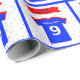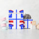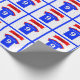 Le t-shirt sport rouge et bleu sur ce papier d'emballage a un grand numéro blanc 9, et l'espace pour vous de le personnaliser en ajoutant le nom de l'enfant d'anniversaire. Le design comporte également une banderole "Joyeux anniversaire" audacieuse. Des cartes d'anniversaire assorties sont également disponibles.