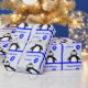 Personnalisez ce papier d'emballage pingouin mignon en ajoutant un nom dans la boîte. Les enfants adorent les pingouins, et celui-ci a un ballon bleu vif de 3ème anniversaire. Le message d'accueil par défaut est "Joyeux anniversaire" mais vous pouvez le modifier aussi. La conception de carrelage garantit des directives faciles pour couper le papier à la taille.