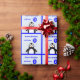 Papier Cadeau Ajouter nom pingouin 3e anniversaire bleu