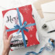 Enveloppe de cadeau personnalisée de Noël de Chevy Camaro de flocon de neige. Ajoutez 2 photos différentes. Arrière - plan rouge.