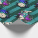 Ce design audacieux et dynamique inspiré d'Alice au pays des merveilles est doté d'un arrière - plan à rayures verticales turquoises et vert foncé avec un lapin blanc, des horloges et des roses. Parfait pour le découpage, l'artisanat ou l'emballage de cadeaux. Veuillez consulter l'aperçu de l'image de "couture" pour vous assurer qu'elle est acceptable.