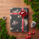Alice en caractères du pays des merveilles sur le noir et le papier d'emballage d'or. Les motifs incluent Alice, reine des coeurs, du chapelier fou, du lapin blanc, du pot de thé, de la tasse de thé, de l'horloge et des fleurs.