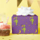 Ajoutez une touche hors du commun aux cadeaux d'anniversaire avec ce papier d'emballage à motifs. Il présente des illustrations d'aliens de l'espace vert tenant des ballons qui ressemblent beaucoup à des planètes contre un arrière - plan violet.