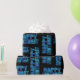 Remplissez vos cadeaux de couleur avec ce papier d'emballage moderne et amusant. Le motif "Happy Birthday" est conçu avec des lettres dans les tons bleus marmorisés sur un arrière - plan noir.