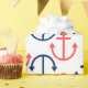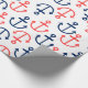 Papier Cadeau Ancres marines bleues et coralliennes en blanc