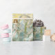 Peinture vintage en pastels avec un ange en robe bleu clair et tenant des fleurs.