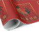 Papier d'emballage chinois de Nouvel An 2017 (2) avec effet sérigraphié et émaillé numérique pour cette conception de Rooster en noir et or sur arrière - plan rouge "soie" avec un cadre doré simple. Lettres dorées avec ombre (non personnalisable) et symbole rouge métallique du coq. Papier d'emballage pour le Nouvel An chinois 2017. Carte de voeux du Nouvel An chinois, carte postale et poste. N'oubliez pas toute la collection.