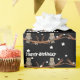 Ce rouleau de papier d'emballage est recouvert de noir d'étoiles blanches avec de jolis chouettes brunes assis sur des branches d'arbres portant des colliers de cristal violet. customisez le texte de Joyeux Anniversaire avec le modèle.