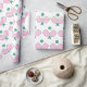 Ce papier d'emballage d'anniversaire comporte un motif de pagaies à pickleball. Les couleurs sont roses et vertes.