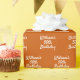 Papier d'emballage tendance fête. Un arrière - plan de couleur orange brûlé, texte blanc. Personnalisez et ajoutez un nom et un âge.