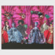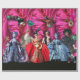 Expressive, fantaisie antique marionnettes vénitiennes de! 700, éclatant costumes rouges magnifiques, coloré, artistique masques vénitiens avec plumes paon et tissu de soie rose fuchsia, Collage numérique original et design graphique de Bulgan Lumini - Baldesign3d (c)
