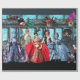 Expressive, fantaisie élégante marionnettes vénitiennes anciennes de! 700, costumes rouges magnifiques, coloré, masques vénitiens artistiques avec plumes paon et imaginaire floral violet or, Collage numérique original et design graphique de Bulgan Lumini - Baldesign3d (c)