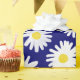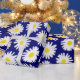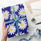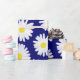 Un motif répétitif composé de plusieurs marguerites peintes à la main sur un arrière - plan bleu marine profond.