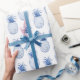 Papier en papier de tissu d'ananas tropical bleu et blanc. Un élégant et joli papier d'emballage tropical à thème d'été. Conçu pour vous par blackberry boulevard