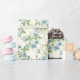 Papier Cadeau Aquarelle bleu et vert Fleurs sur blanc