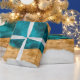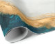 Papier Cadeau Aquarelle et or Turquoise Vague Abstraite
