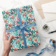 Cette enveloppe cadeau colorée est parfaite pour les anniversaires, les fêtes de mariée et les baby showers! L'oeuvre présente un arrière - plan turquoise aux fleurs de lys peintes à l'aquarelle de corail.