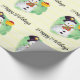 C'est un adorable papier d'emballage de Noël avec une aquarelle d'un bonhomme de neige tenant un cadeau sur un motif rayé jaune clair avec les mots "Joyeuses fêtes". Le texte sur le papier d'emballage peut être customisé avec le vôtre ou laissé tel quel.