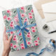 Papier Cadeau Aquarelle rose roses et rayures blanches motif